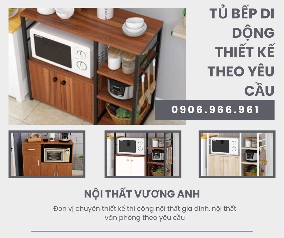 Nội Thất Vương Anh là đơn vị hàng đầu trong lĩnh vực sản xuất các mẫu tủ bếp di động theo yêu cầu của khách hàng. Với đội ngũ thiết kế chuyên nghiệp và kinh nghiệm lâu năm, chúng tôi cam kết mang đến cho khách hàng những sản phẩm chất lượng cao, đa dạng về mẫu mã và tính năng.