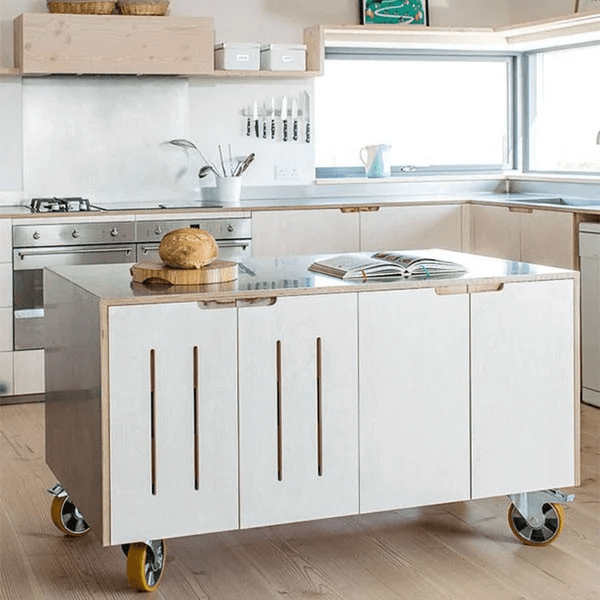 Mẫu tủ bếp di động có bánh xe là một sự lựa chọn tuyệt vời cho những ai yêu thích sự linh hoạt trong không gian nấu nướng. Việc trang bị bánh xe giúp bạn dễ dàng di chuyển tủ đến các vị trí khác nhau trong nhà bếp mà không gặp bất kỳ trở ngại nào. Bạn có thể dễ dàng thay đổi thiết kế bếp từng ngày chỉ bằng cách điều chỉnh vị trí của tủ.