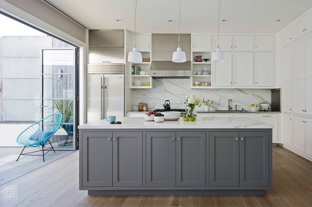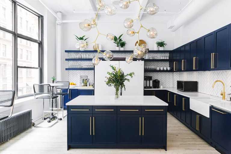 Bên cạnh đó, tủ bếp màu xanh dương dễ dàng kết hợp với các đồ nội thất khác. Nó có thể hòa quyện tuyệt vời với màu trắng của tường và nền nhà, tạo ra một bức tranh tổng thể hài hòa. Giúp khu vực bếp trở nên rộng rãi hơn, màu sắc này cũng mang lại một không khí tươi mới cho không gian nấu nướng của bạn.