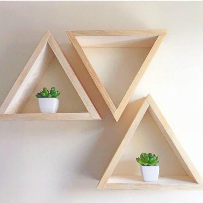 Kệ hình tam giác treo tường là một trong những lựa chọn sáng tạo, phù hợp cho những không gian sống năng động và trẻ trung. Với thiết kế đơn giản, gọn nhẹ và có tính thẩm mỹ cao, mẫu kệ này giúp tối ưu không gian trưng bày, đồng thời tạo điểm nhấn trang trí cao cho phòng khách. Hình dáng tam giác cũng giúp bạn dễ dàng kết hợp nhiều chiếc kệ để tạo thành những bức tranh nghệ thuật treo tường sống động.