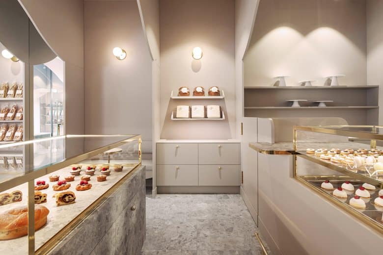 Nếu bạn muốn thu hút đối tượng khách hàng trẻ tuổi, việc thiết kế cửa hàng bánh ngọt hiện đại là lựa chọn lý tưởng. Đường nét thiết kế đơn giản nhưng tinh tế với các yếu tố tối giản sẽ tạo nên không gian mở, dễ chịu và không kém phần sang trọng. Sử dụng kính lớn và hợp kim không gỉ trong thiết kế tạo cảm giác không gian rộng rãi hơn.