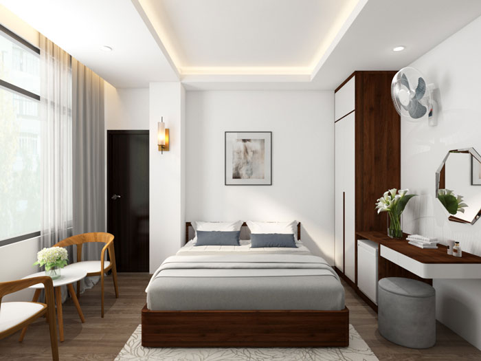 Khi thiết kế nội thất khách sạn mini, lựa chọn đồ nội thất phù hợp là một yếu tố then chốt. Các loại đồ nội thất cần có bao gồm giường, bàn ghế, tủ quần áo, và trang thiết bị tiện nghi như tủ lạnh, máy lạnh. Mỗi món đồ đều cần phải đảm bảo tính tiện nghi, tiết kiệm diện tích và có khả năng chịu lực tốt.