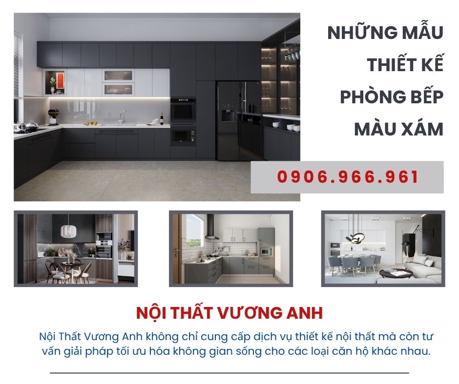 Nội thất Vương Anh tin rằng một không gian sống đẹp và tiện nghi là điều mà mọi gia đình xứng đáng có được. Chúng tôi chuyên cung cấp dịch vụ thiết kế và thi công nội thất phòng bếp theo yêu cầu, cam kết mang đến những giải pháp tối ưu nhất cho khách hàng. Với kinh nghiệm dày dạn trong lĩnh vực nội thất, đội ngũ thiết kế của chúng tôi luôn sẵn sàng lắng nghe và hiện thực hóa những ý tưởng của bạn thành phong cách thiết kế phòng bếp màu xám độc đáo.