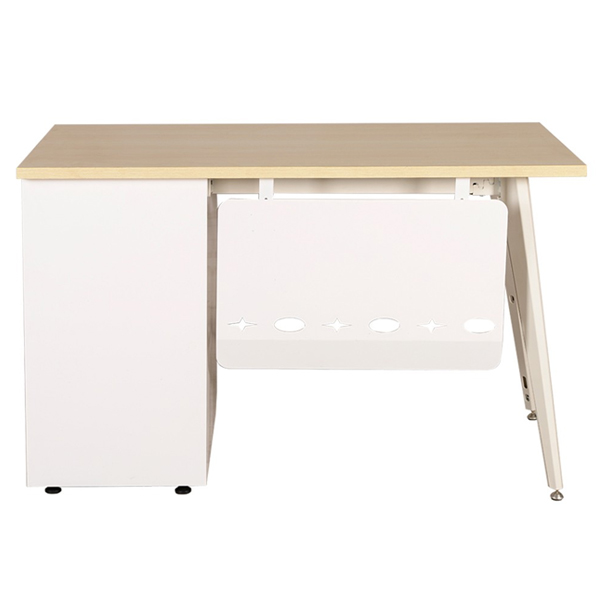 Yếm sắt của bàn chân sắt hộc liền 1m4 LUX140HLYC10 chính là điểm nhấn in dấu ấn thẩm mỹ cho sản phẩm. Sự kết hợp giữa màu trắng và họa tiết trang trí độc đáo khiến bàn làm việc này trở nên nổi bật hơn bao giờ hết.