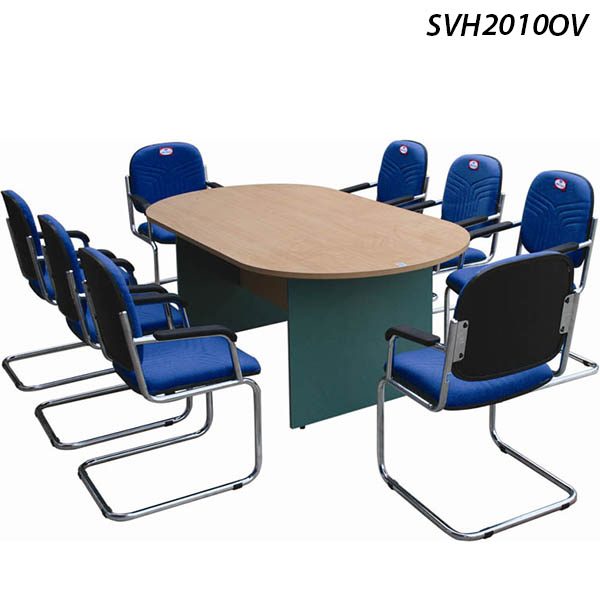 Bàn họp SVH2010CN,OV Hòa Phát thuộc dòng bàn gỗ Melamine có kích thước vừa phải không quá lớn, phù hợp với những phòng hợp vừa và nhỏ, giao động từ 8 đến 10 người trong một cuộc họp. Bàn có hai loại hình chữ nhật hoặc oval, tùy thuộc vào sự lựa chọn bày trí của khách. Bàn phối màu trẻ trung hiện đại