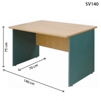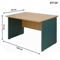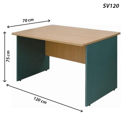 – Bàn nhân viên SV120 có mặt bàn phẳng, hình chữ nhật, không có hộc tủ, không đợt đi kèm.