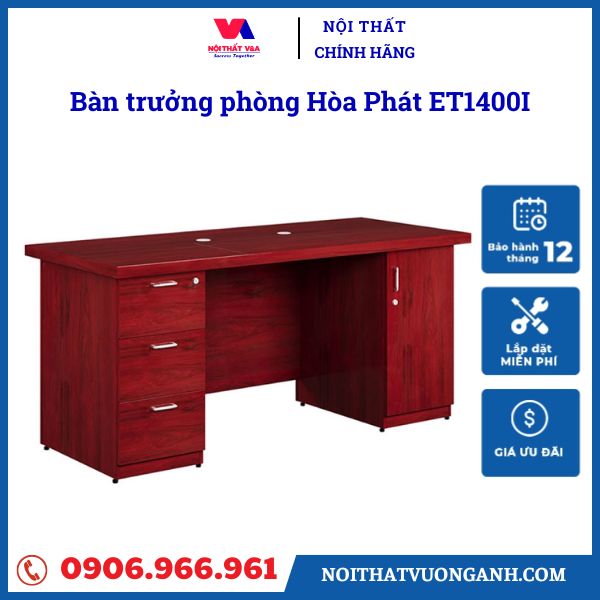 Nội Thất Vương Anh tự hào là đơn vị cung cấp bàn trưởng phòng Hòa Phát ET1400I tại HCM.
