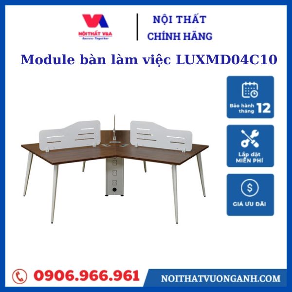 Module bàn làm việc LUXMD04C10 là một sản phẩm đáng chú ý trong danh mục các sản phẩm bàn làm việc dành cho văn phòng. Với thiết kế phù hợp cho ba người sử dụng, sản phẩm này không chỉ đáp ứng nhu cầu làm việc mà còn tạo ra một môi trường năng động và hiện đại.